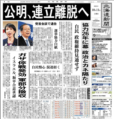 ▼自民は高をくくっていたに違いない。どうせついてくるだろうと。新総裁の高市早苗氏は公明より先に国民民主党に接触したと伝わる。裏金関与の議員も党の要職に据えた。弁解のしようがあるまい。