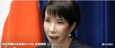 Yahoo!ニュースに高市内閣の高支持率が出ていました。