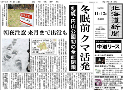 全道各地でクマが大量出没する中、酪農学園大の佐藤喜和教授(野生動物管理学)は、通常であればクマが冬眠を始める12月まで、他地域でも同様の警戒が必要とした上で、「そもそも冬眠時期は個体差が大きく、12月末まで冬眠しない事例もある」と指摘。出没状況を確認した上で遭遇のリスクがある場合、早朝や夜間の外出を控えるよう呼びかけている。(樋口史典 、高橋沙希 、高松大器)