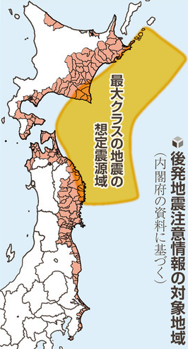 後発地震注意情報は、日本海溝・千島海溝を震源とする巨大地震の被害軽減に向け、2022年112から運用が始まった。対象地域は、震度6弱以上か津波高3メートル以上が想定される北海道から千葉県の7道県の182市町村。住民には16日午前0時まで、避難経路の確認など日頃の備えの再確認を促すとともに、すぐ逃げられる態勢の維持など特別な備えを求める。