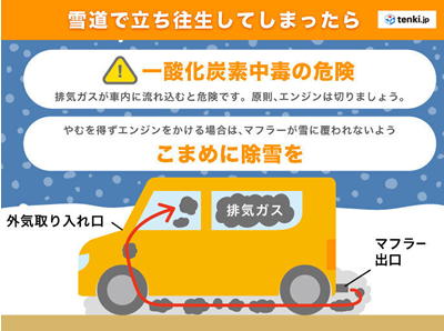 雪道で立ち往生 一酸化炭素中毒に注意を
