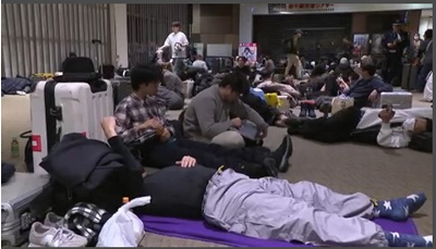 高速道路も止まると新千歳空港の床に寝るしかなくなります。