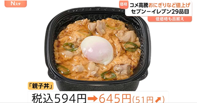 弁当では、「親子丼」が594円から51円値上げし、645円になります。