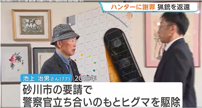 ヒグマの駆除をめぐり、猟銃所持の許可を取り消された北海道砂川市のハンターに公安委員会が謝罪し、猟銃が返還されました。